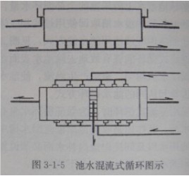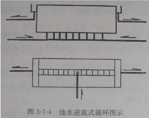 循環(huán)水經(jīng)池端壁或側(cè)壁水面以下進(jìn)水口進(jìn)入,由設(shè)在池底回水口排除進(jìn)行循環(huán)。
